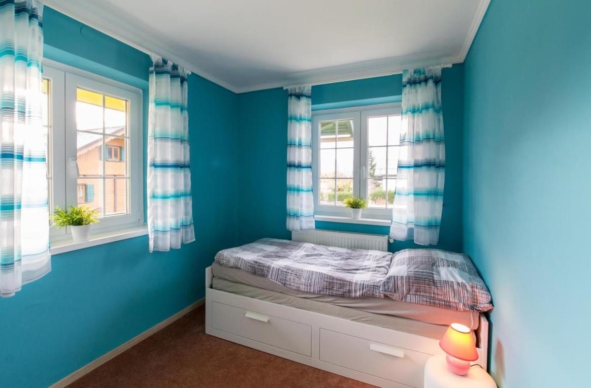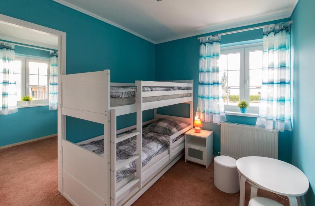 Felszereltség: 1 dupla ágy, 2 egyszemélyes ágy, asztal 2 székkel, fűtés, gardrob, teakonyha, kávéfőző, tányérok, poharak, étkészlet, ágyneműk, törölközők